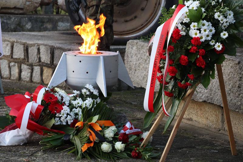 Następnie w asyście kompani honorowej i orkiestry delegacje uczestników uroczystości złożyły wieńce i wiązanki kwiatów pod Pomnikiem Artylerzysty.